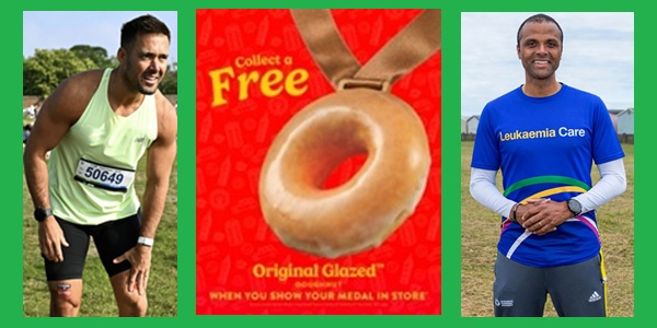 Take your finishing medal to any Krispy Kreme store today and claim a free Original Glazed Doughnut.
