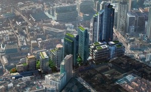 Artist's impression of the skyscrapers the developers want to build at the western end of Bethnal Green bggy April 13, 2016 0 2016-04-13 admin1 tweet
